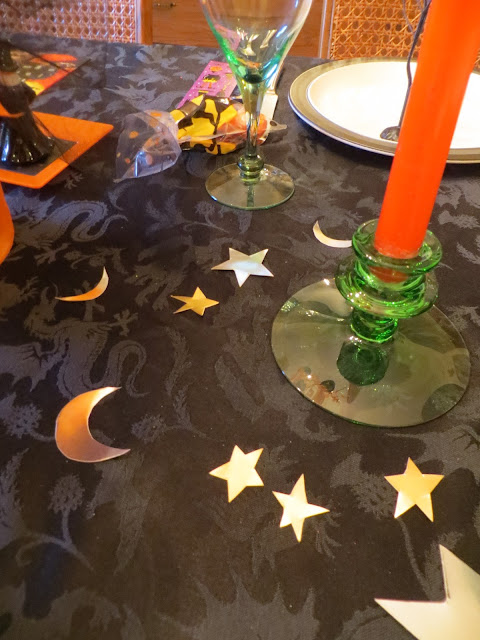 Justine - Looks like well rounded decorations! The tablescape looks very colorful. I like the design on the cups and napkins and I love the pumpkins in hats! Also, great looking crescent moon shots, that must have added a nice atmosphere. I,have really felt the Halloween spirit this year!