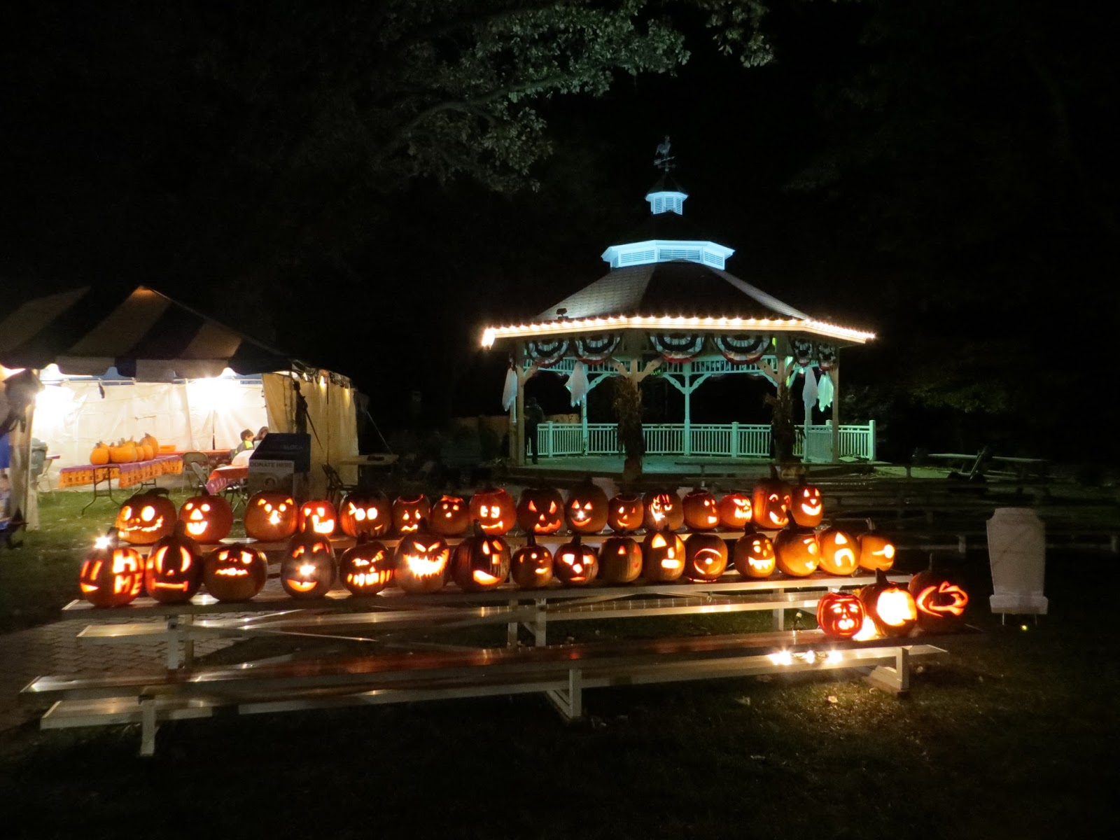 Some kids were carving pumpkins and setting them up on bleachers. I think there was some charity involved, like they'd pay for the pumpkin and that money would go to charity. You'll see these pumpkins again in a bit.
