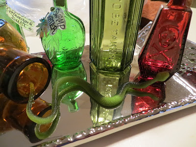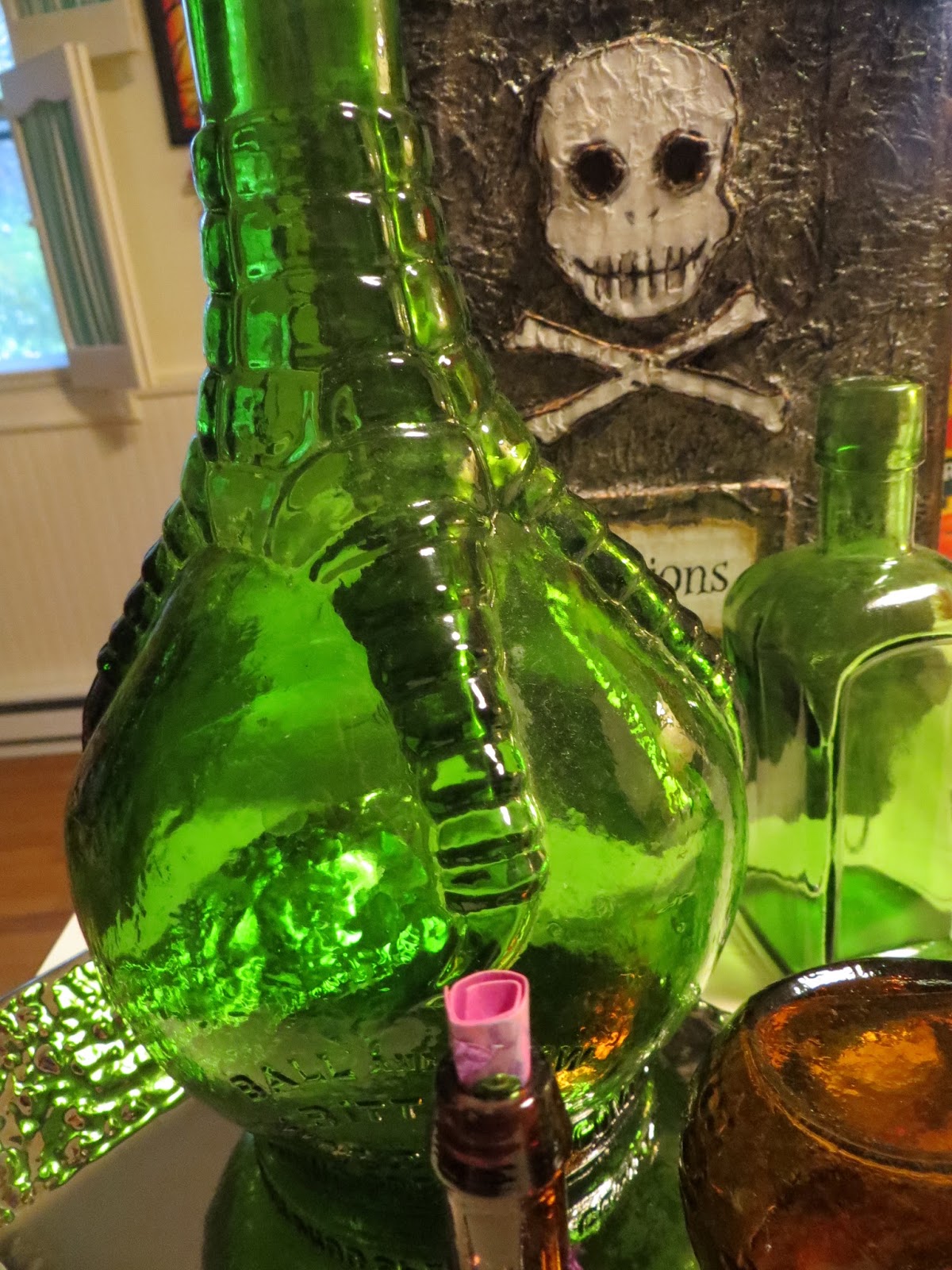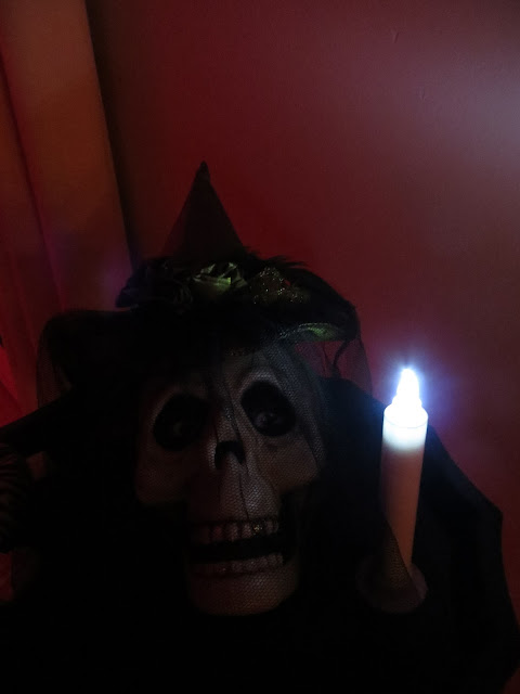Finally I found a way to work these life-size glitter skulls into a decoration. They were really pretty with the candlelight on them.