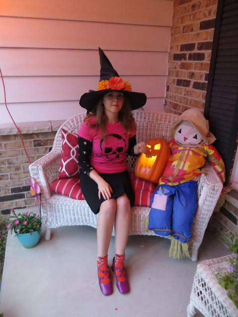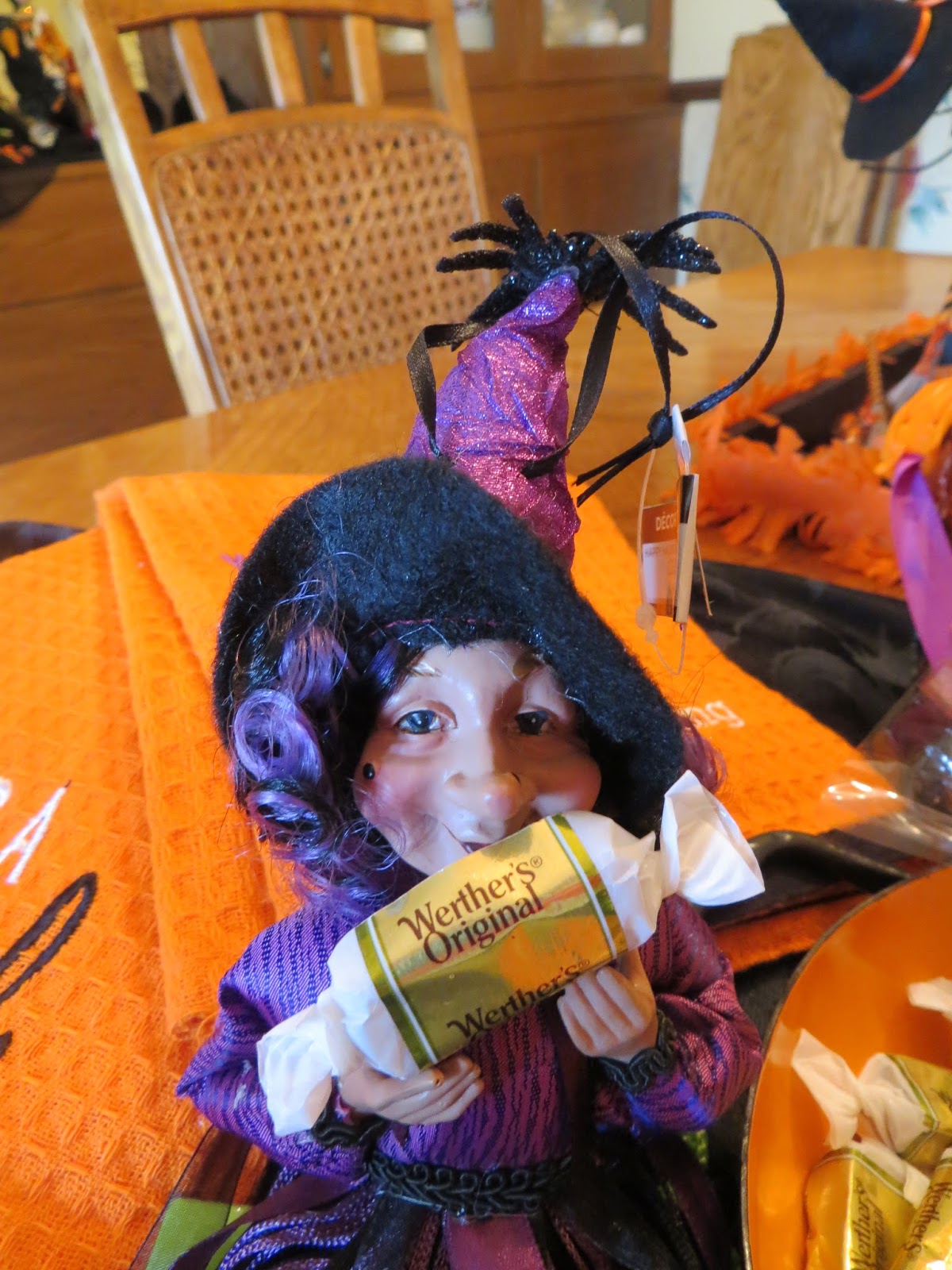 And a cute little witch ornament. Her hands were naturally out like that so I gave her one of the candies to hold.