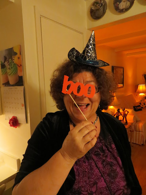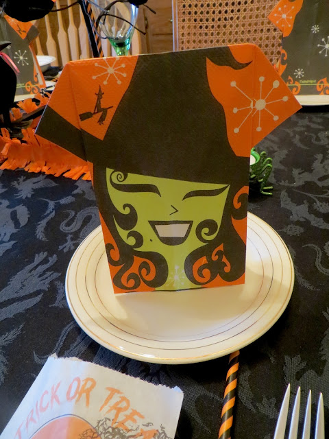 Wow Justine - looks like fun. Your decorations are great. That witch who is riding the crow is really neat. I like that spell book behind her too. The food looks yummy as well. Nicely done!