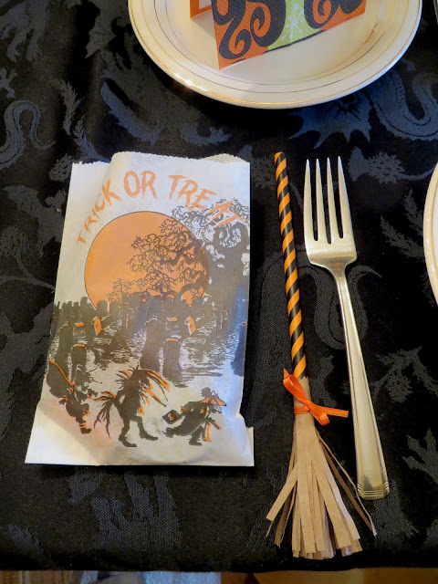 ReplyDeleteMatt ~ Thanks! I was impressed with that hat rack too. I was impressed with the hats she made and how it could come together as a hat rack with the combination of a spooky tree and a black tray. It was one of those times where something neat can be made by using things you already have in a different way. Yeah! I thought things ended up looking vintage too, with the orange paper fringe around the tray and the treat bags.