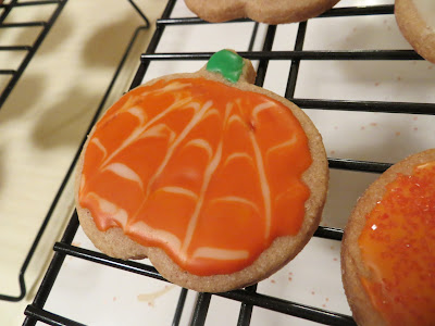 Some of you may have heard from me about these cookies! They're like a sugar cookie but with extra cinnamon added and they're amazing! I got the recipe last year in the WE Energies Christmas Cookbook they give out in Wisconsin. I only tried this one recipe out of the book but I've tried it again and again. I made these for New Year's (stars), Valentine's Day (hearts), and for summer (flowers). This time it was pumpkins.